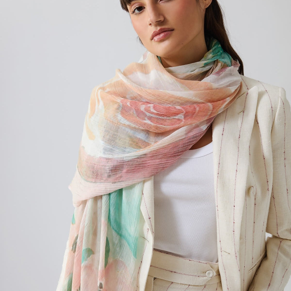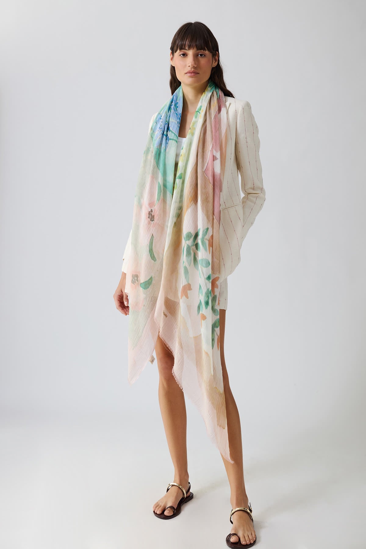 19Andrea's47 was born from the dream to create a production entirely in Italy, making use of ancient traditions. Precious and unique articles such as scarves, shawls, plaid and other accessories, are all made with fibers from the most isolated corners of Earth. Cashmere, vicuna, silk, linen, textures on antique looms where the skilled hands of one of the last remaining weaver maestro meet the request of the modern market. With wool yarn accompanied by a small wooden shuttle that never stops its way up to twine the sides of the selvage link an embroidery made with exclusive colors, prints inspired by nature, hand painting, transparency