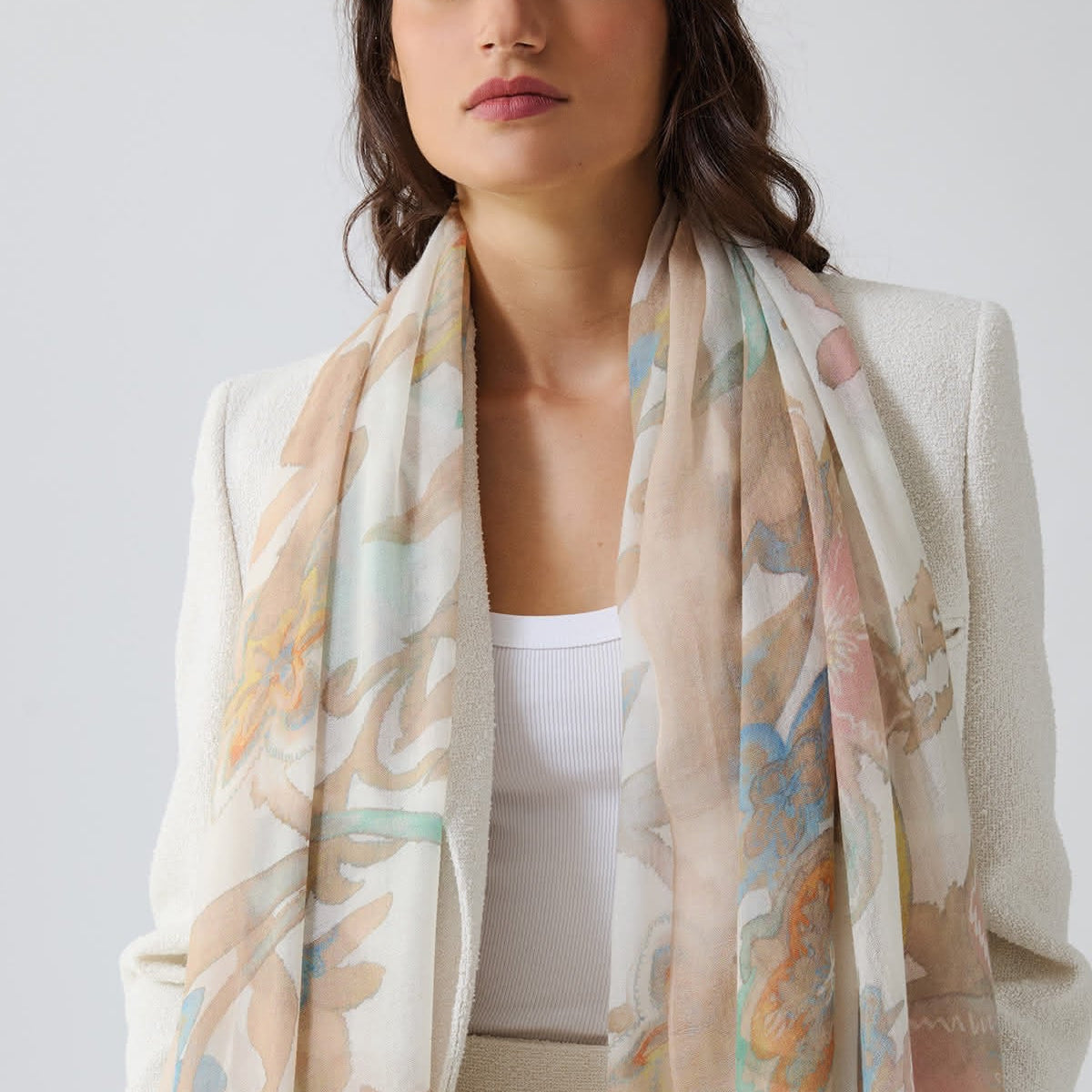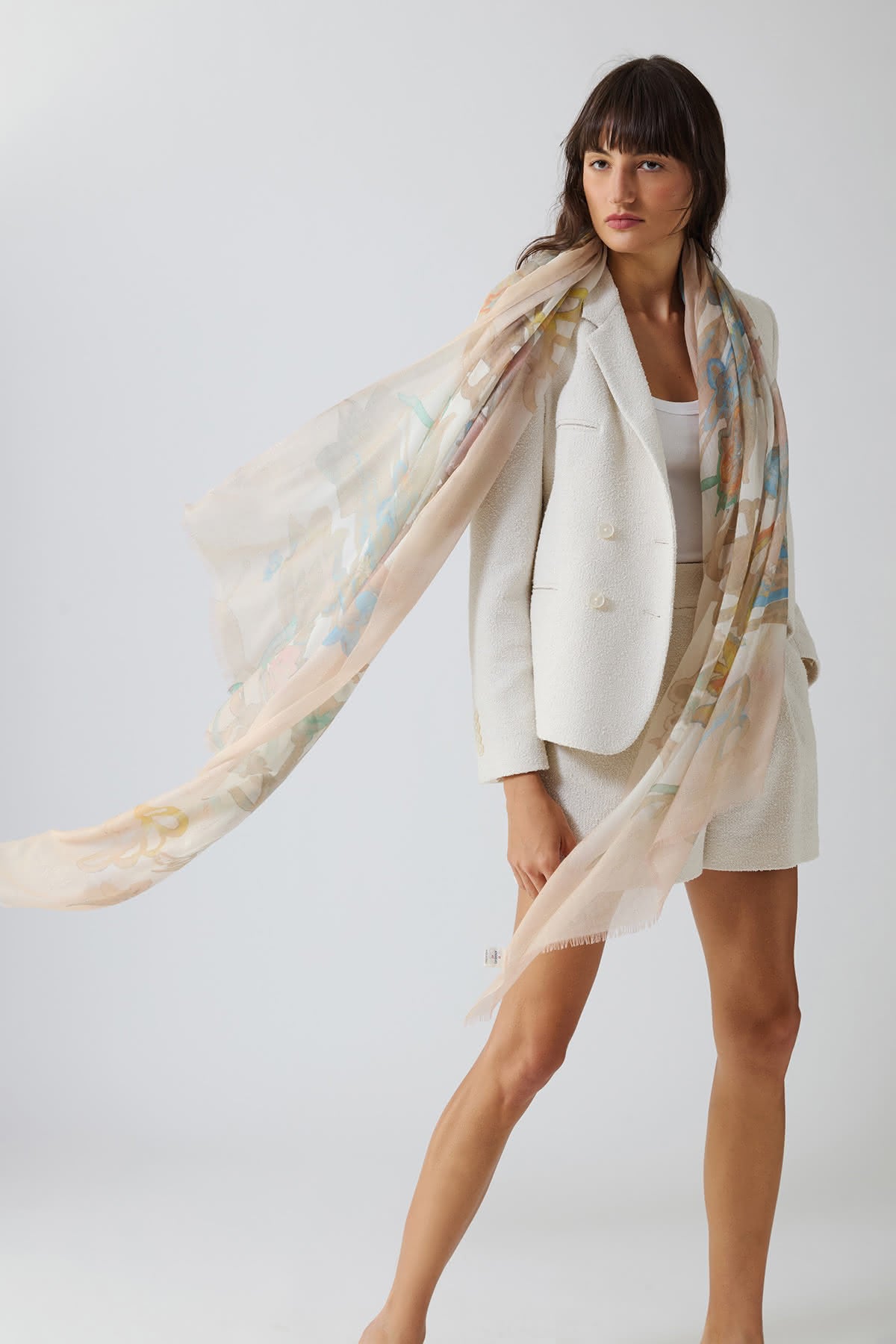 19Andrea's47 was born from the dream to create a production entirely in Italy, making use of ancient traditions. Precious and unique articles such as scarves, shawls, plaid and other accessories, are all made with fibers from the most isolated corners of Earth. Cashmere, vicuna, silk, linen, textures on antique looms where the skilled hands of one of the last remaining weaver maestro meet the request of the modern market. With wool yarn accompanied by a small wooden shuttle that never stops its way up to twine the sides of the selvage link an embroidery made with exclusive colors, prints inspired by nature, hand painting, transparency