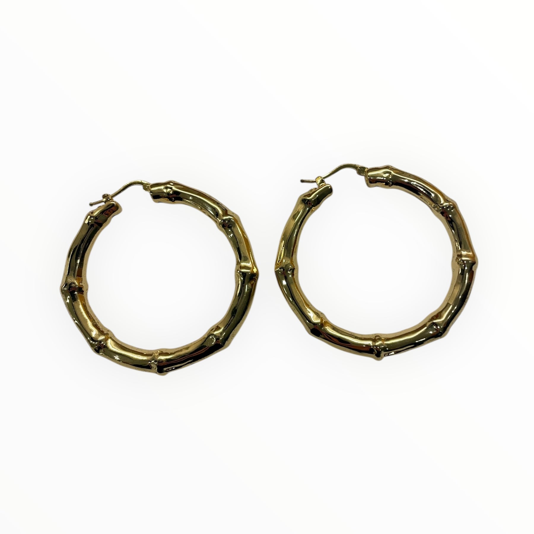 The Bamboo Earrings 24kt gold-plated, handmade by expert goldsmiths from Arezzo, they are inspired by Francesca Bianchi's roots. They are lightweight and easy to wear thanks to the bayonet clasp. The piece dates back to 1974. All these models, designed by her grandfather, Loris Franco Bianchi, are now reinterpreted as a magnificent tribute to the chain, a timeless element of jewelry and a symbol of an unbreakable bond.