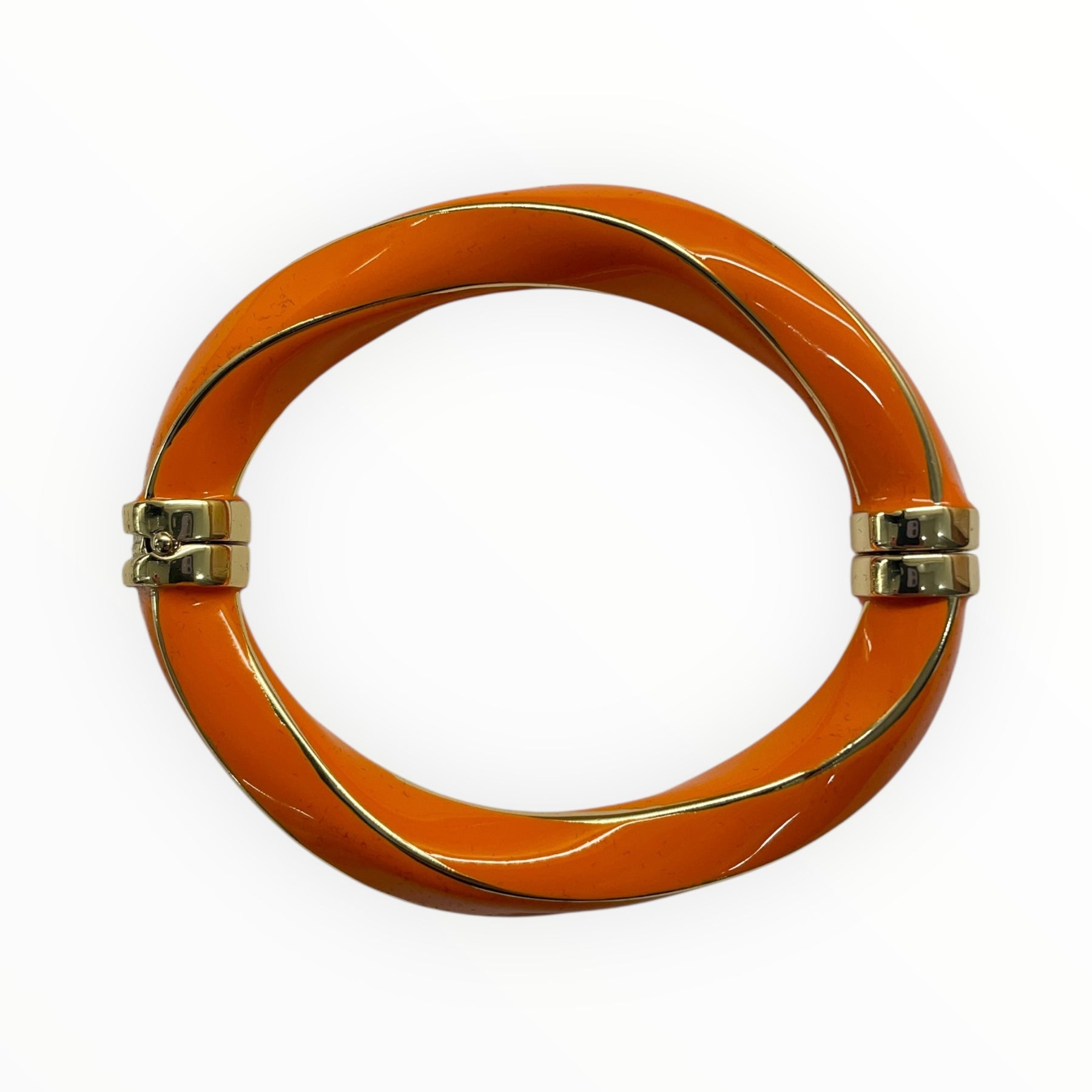 The Era bracelet has an oval shape, to fit perfectly on the wrist, and is easy to wear thanks to the spring-loaded side opening. The bracelet wire is worked to make it square with a torchon movement, a property that gives it great shine. Of the four surfaces, four are enamelled, leaving the edges uncovered, a detail that makes it extremely elegant and modern. This technique creates a golden frame effect that embellishes and highlights the shapes and colours.