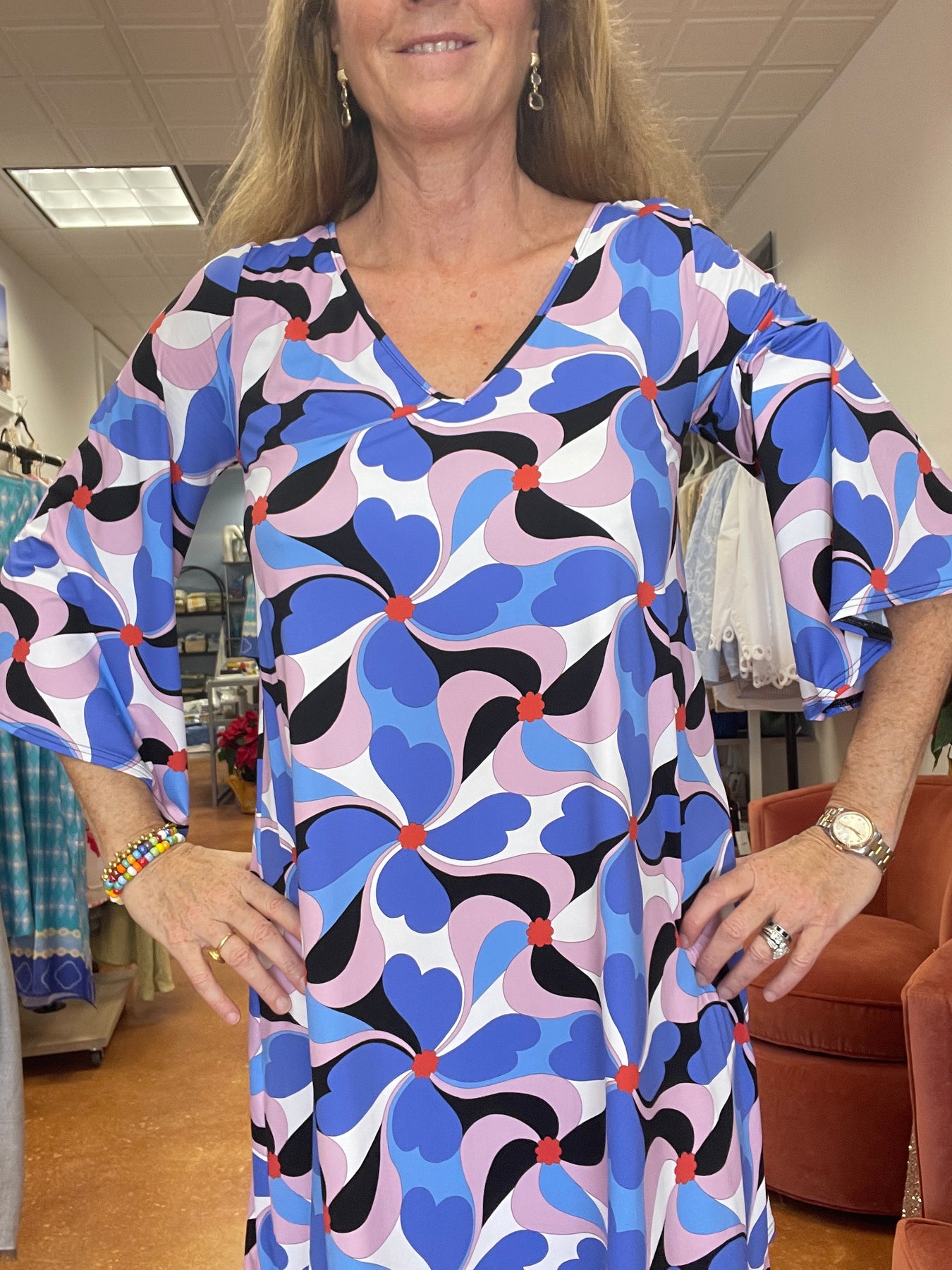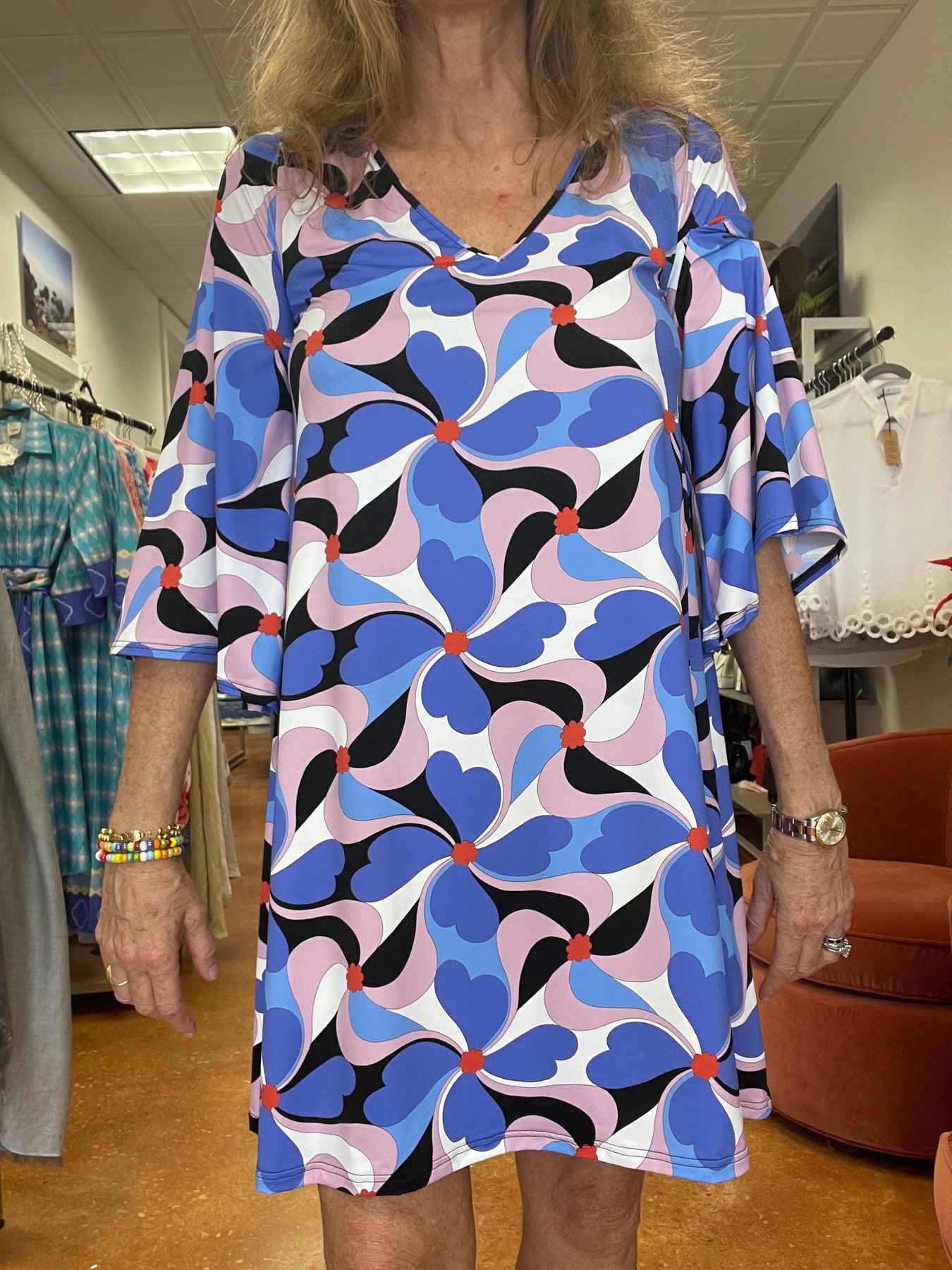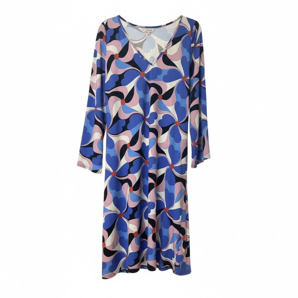 Wide sleeved, flared dress. Loose fit.