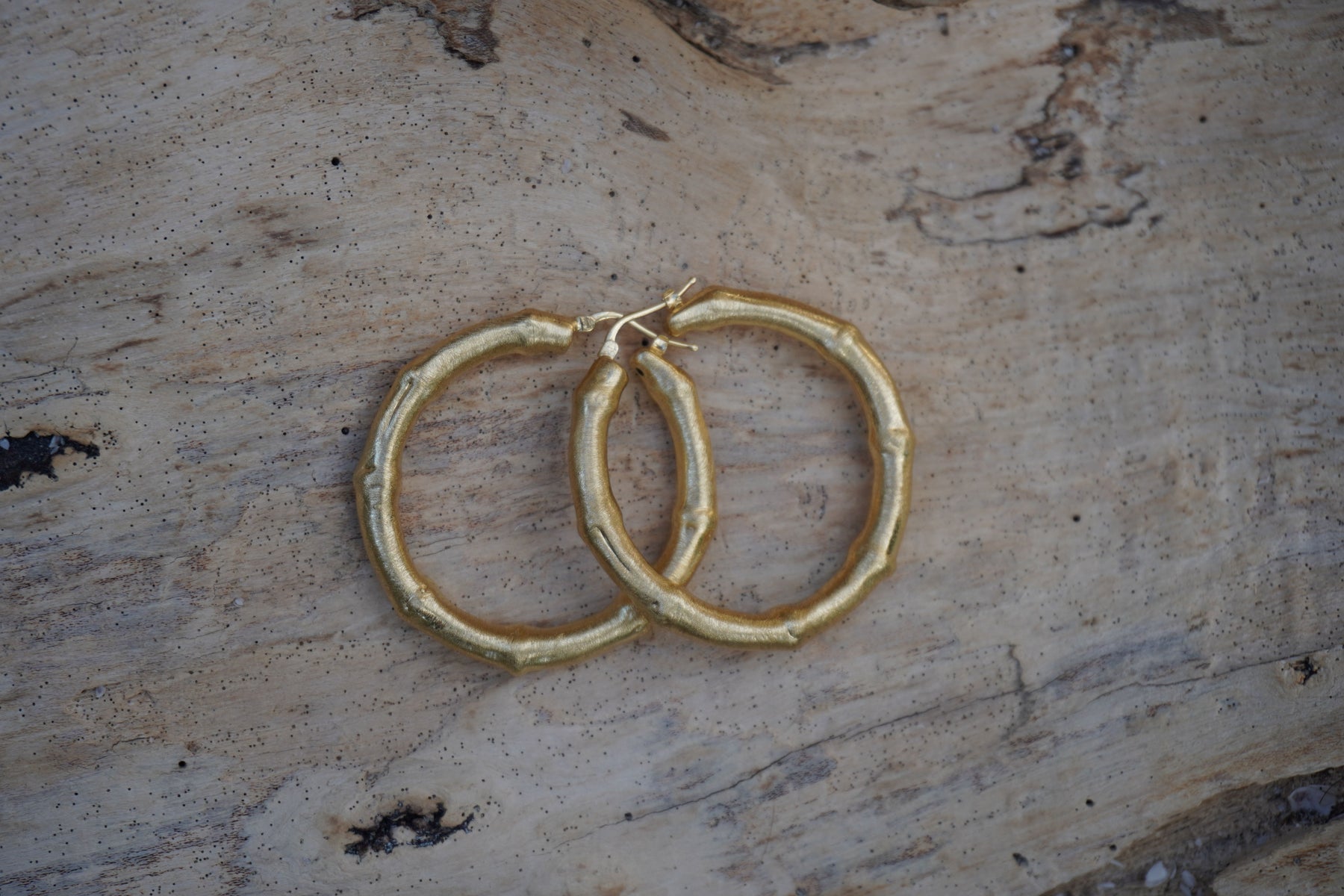 The Bamboo Earrings 24kt gold-plated, handmade by expert goldsmiths from Arezzo, they are inspired by Francesca Bianchi's roots. They are lightweight and easy to wear thanks to the bayonet clasp. The piece dates back to 1974. All these models, designed by her grandfather, Loris Franco Bianchi, are now reinterpreted as a magnificent tribute to the chain, a timeless element of jewelry and a symbol of an unbreakable bond.