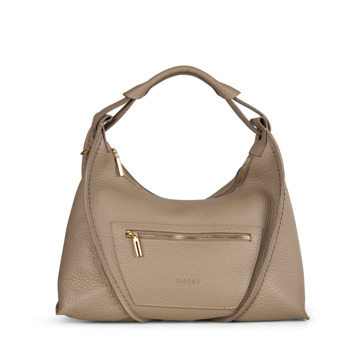 Full grain leather top handle handbag with cross body strap