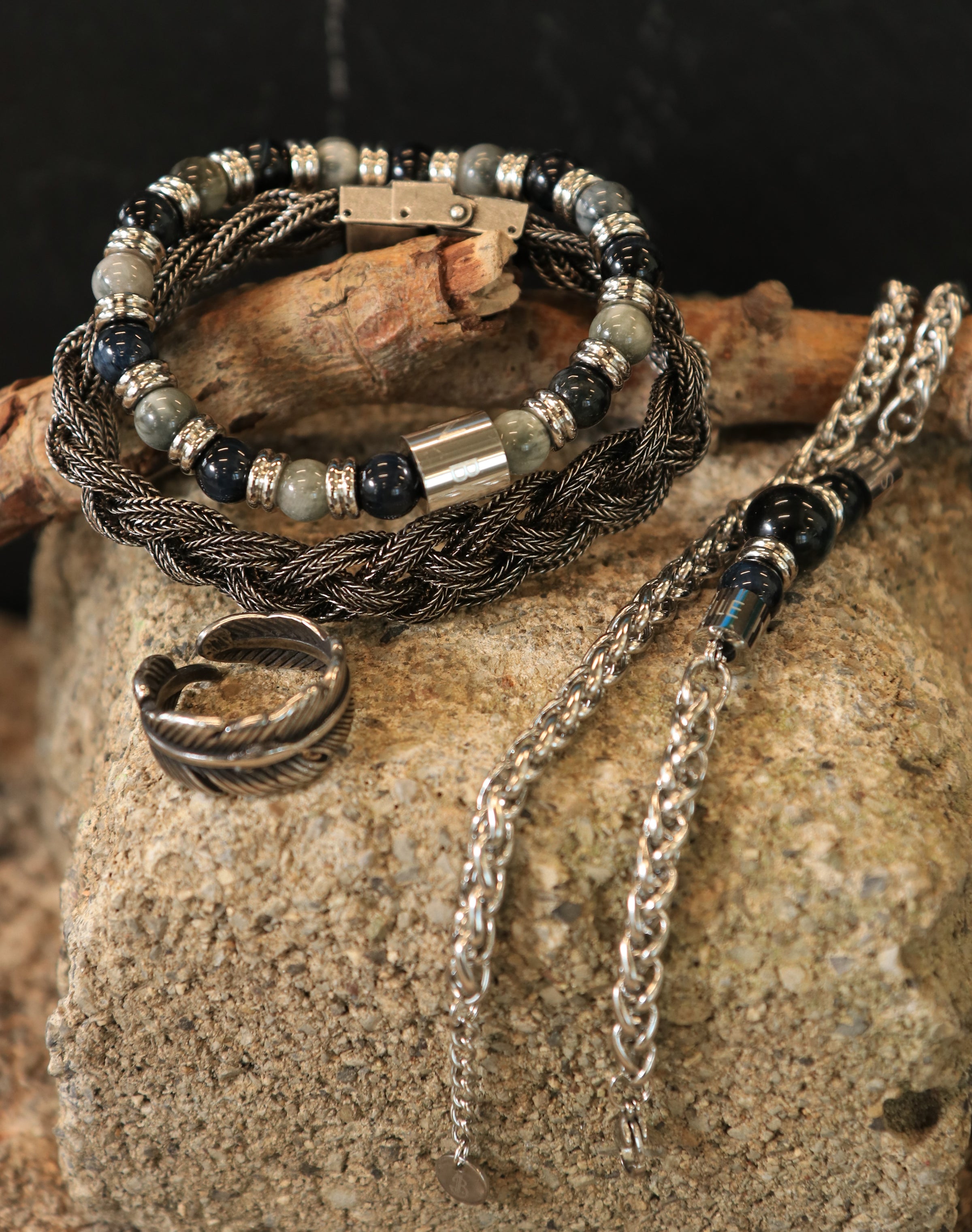 Ivan Basile is an Italian brand that creates bracelets, necklaces, Tibetan malas and chains for trousers in semi-precious hard stone. Entirely handcrafted, its jewels are assembled by hand by inserting the stones one by one.